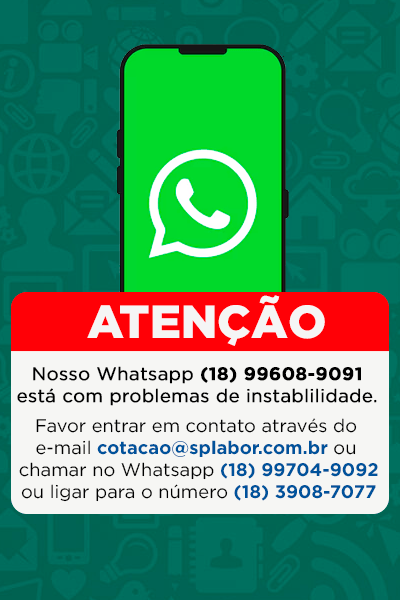 Existem diversas formas de fazer um orçamento conosco: a forma mais rápida é de inserir os produtos de sua necessidade em nosso carrinho de orçamento, também podem entrar em contato com um de nossos executivos de venda através do nosso canal no WhatsApp (18) 99608-9091 e mandar um e-mail para sp@splabor.com.br ou cotacao@splabor.com.br