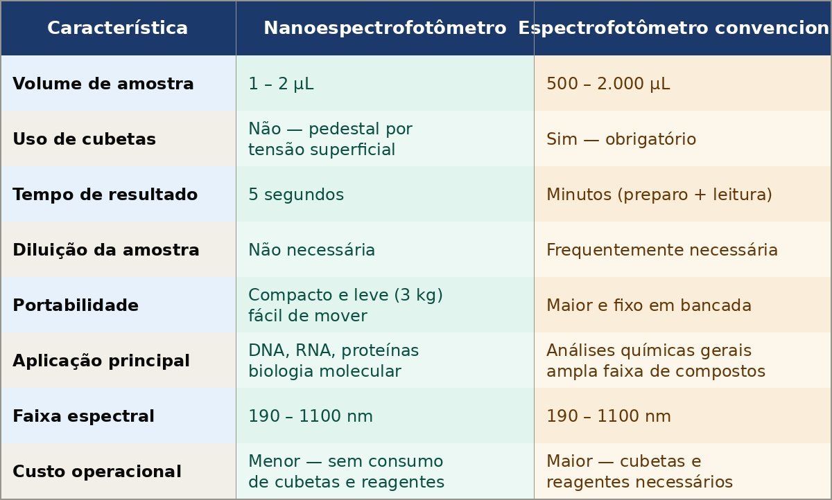 Nanoespectrofotômetro x espectrofotômetro convencional