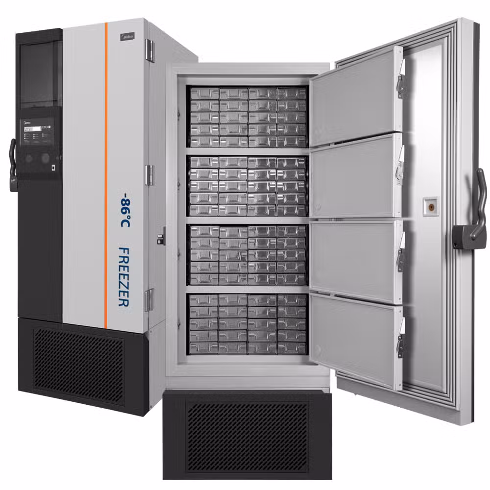 - Aplicações: Os ultrafreezers são essenciais para criopreservação de células vivas, tecidos e alguns compostos químicos especiais. Usados em biobancos, laboratórios de fertilidade e em pesquisas que envolvem criobiologia.