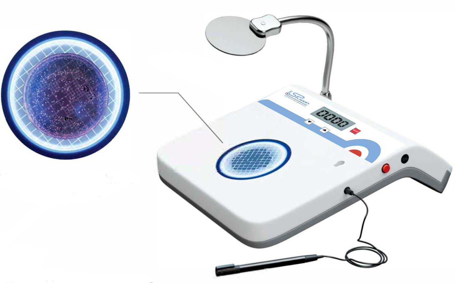 1. Auxiliar na Contagem Manual: Em modelos de contadores de colônias manuais, o contador possui uma base iluminada sobre a qual a placa de Petri é colocada, e um marcador ou ponteiro para tocar cada colônia. Cada toque é registrado como uma contagem, ajudando a evitar a contagem dupla de colônias.