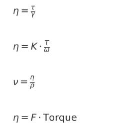 Existe uma fórmula para calcular a viscosidade dinâmica (ou absoluta) de um fluido. A viscosidade pode ser expressa de diferentes formas, dependendo do tipo de viscosidade (dinâmica ou cinemática) e do método de medição. Vamos à principal:
