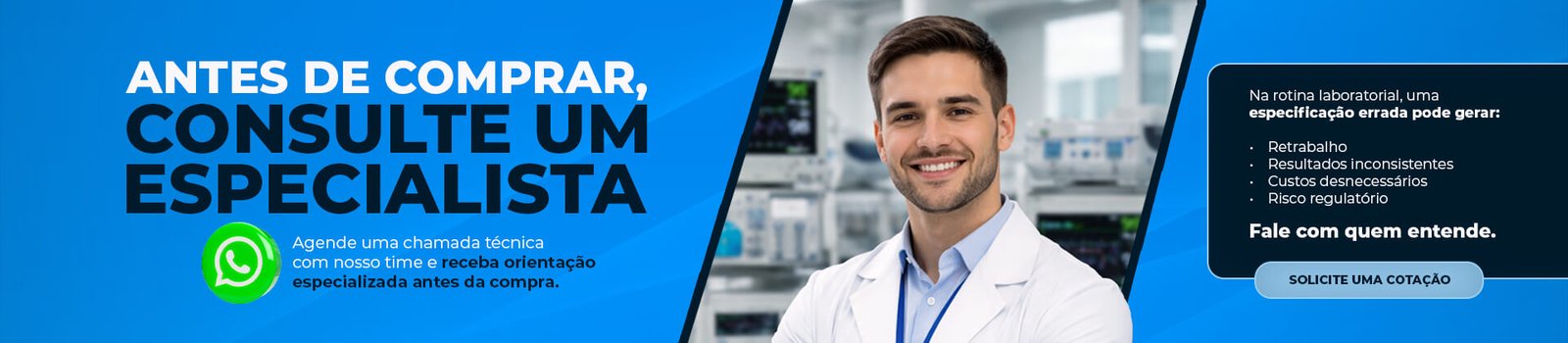 👉 Solicite agora sua cotação. Nossa equipe está ON-LINE para atender você e indicar as melhores soluções para o seu laboratório.