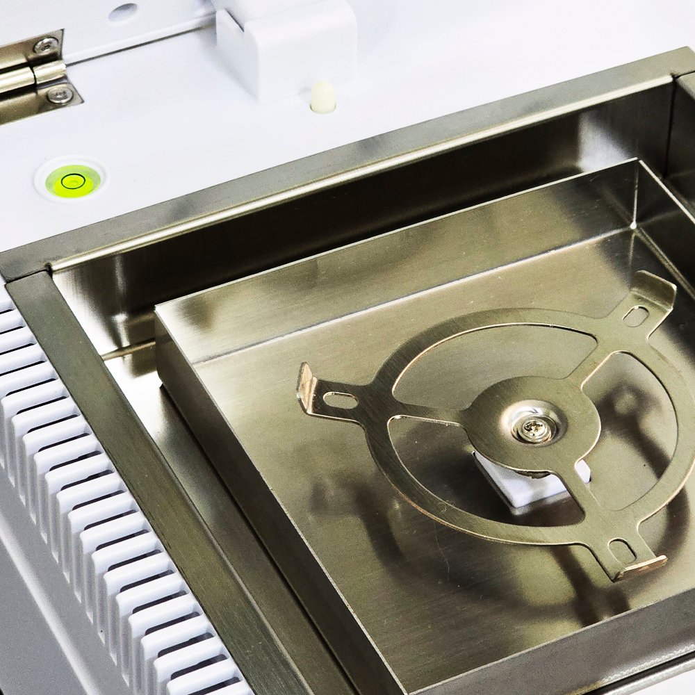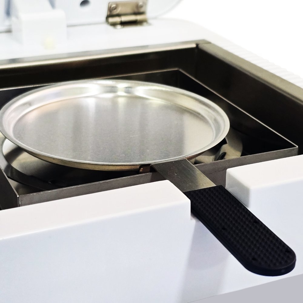 A faixa de temperatura de secagem ajustável de 60 a 180 °C, com incremento de ±1 °C, garante a secagem uniforme e controlada da amostra, otimizando o tempo de análise e garantindo alta performance.