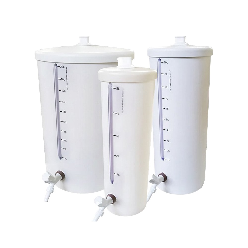 Está disponível nos tamanhos 5, 10 e 20 litros, todos com visor graduado e torneira de 1/2”.