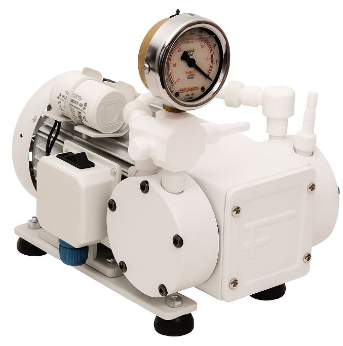 A Bomba de Vácuo tipo Diafragma a Seco 2 Estágios – Modelo 822T foi desenvolvida para oferecer vácuo profundo, operação livre de óleo e máxima resistência química em processos laboratoriais.
