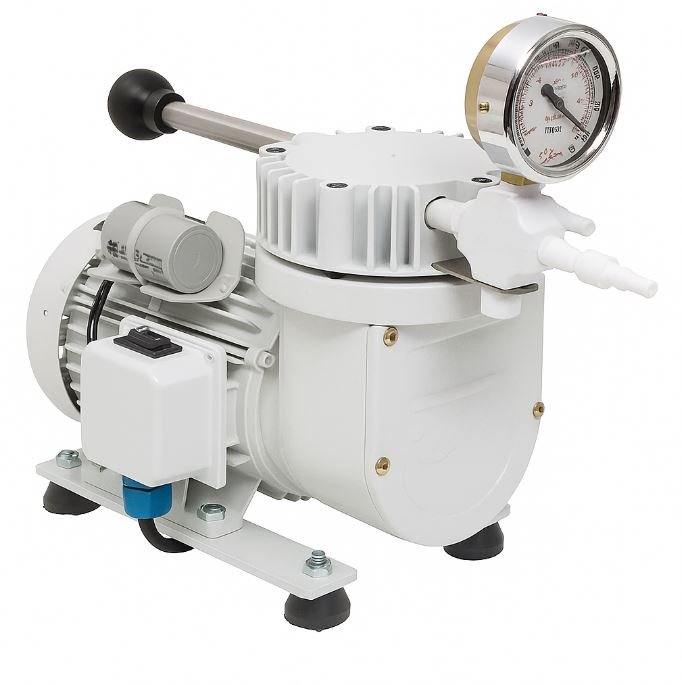 | Bomba de Vácuo tipo Diafragma a Seco com 1 estágio sem Resistência Química – Vácuo Relativo 700 mm Hg / 27,5 pol Hg – Vazão 34 L/min / 1,21 c ft/min - 220 Volts |