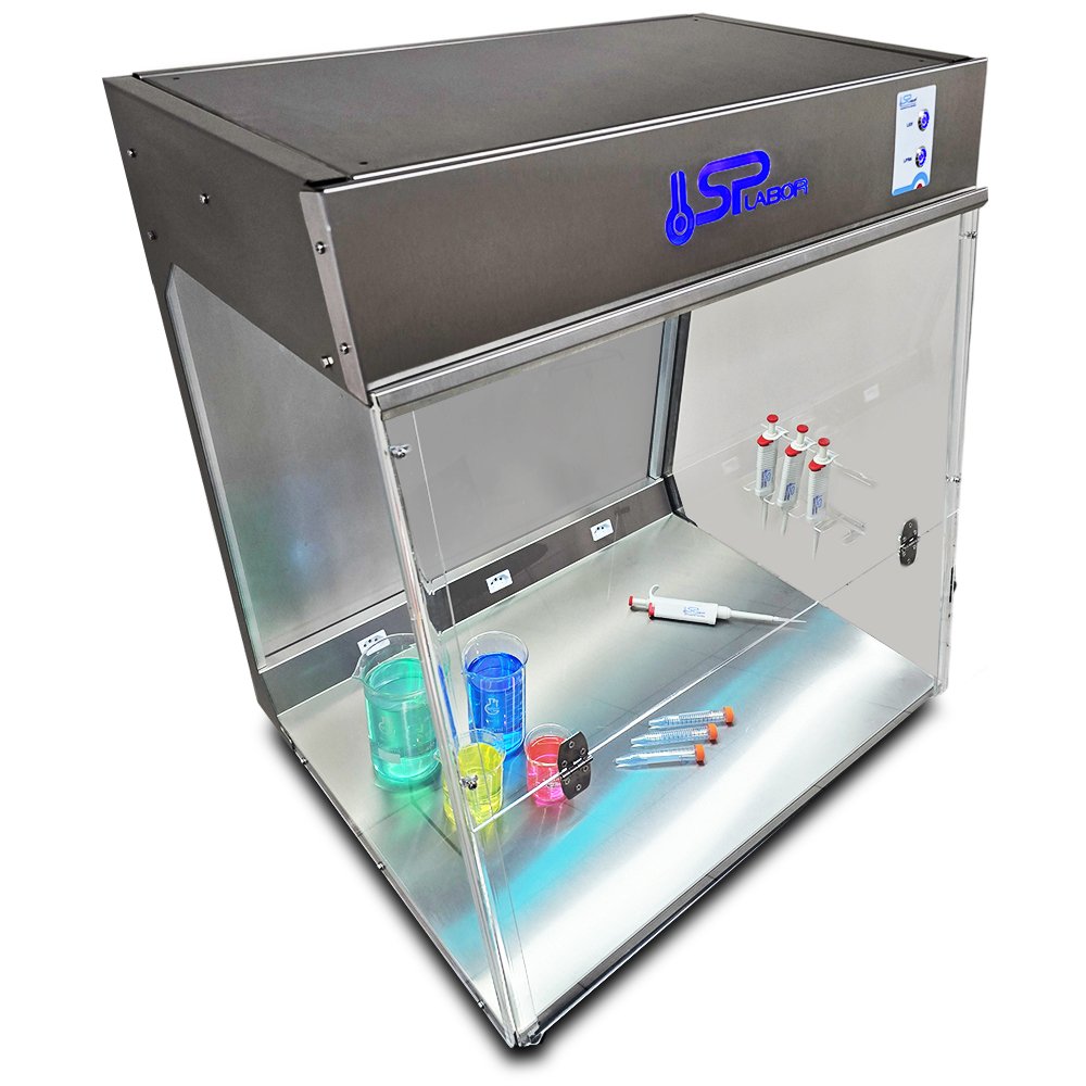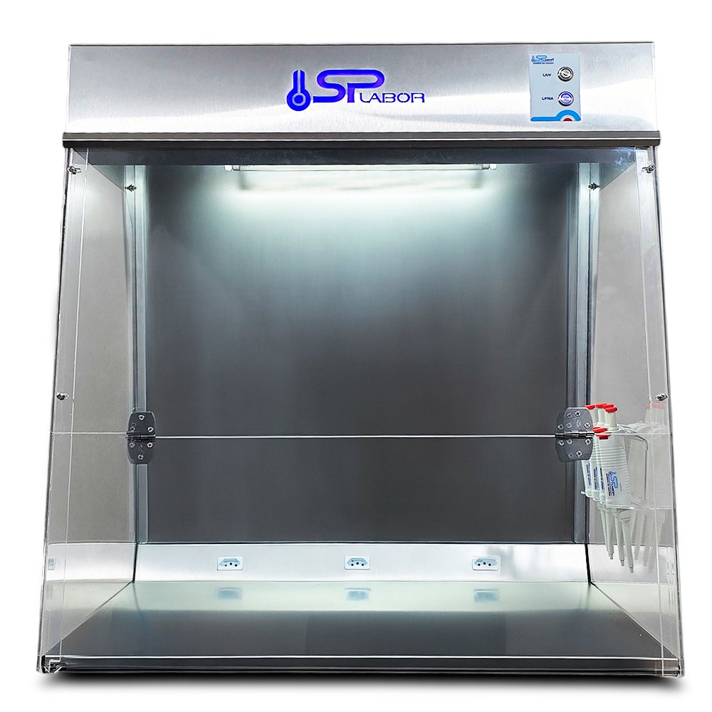 Cabine Workstation Asséptica para PCR / DNA em Aço Inox – Lâmpada Interna UV-C (254nm) – Com Laterais em Acrílico – Modelo SP-227-AI