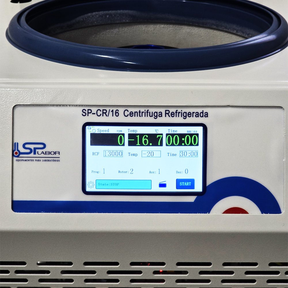Centrífuga de Bancada Refrigerada Digital – Faixa de Velocidade 16000RPM – Com Rotor para 24 Tubos de 1,5 / 2,0mL – Modelo SP-CR/16 – SPLABOR ANVISA 83110270001