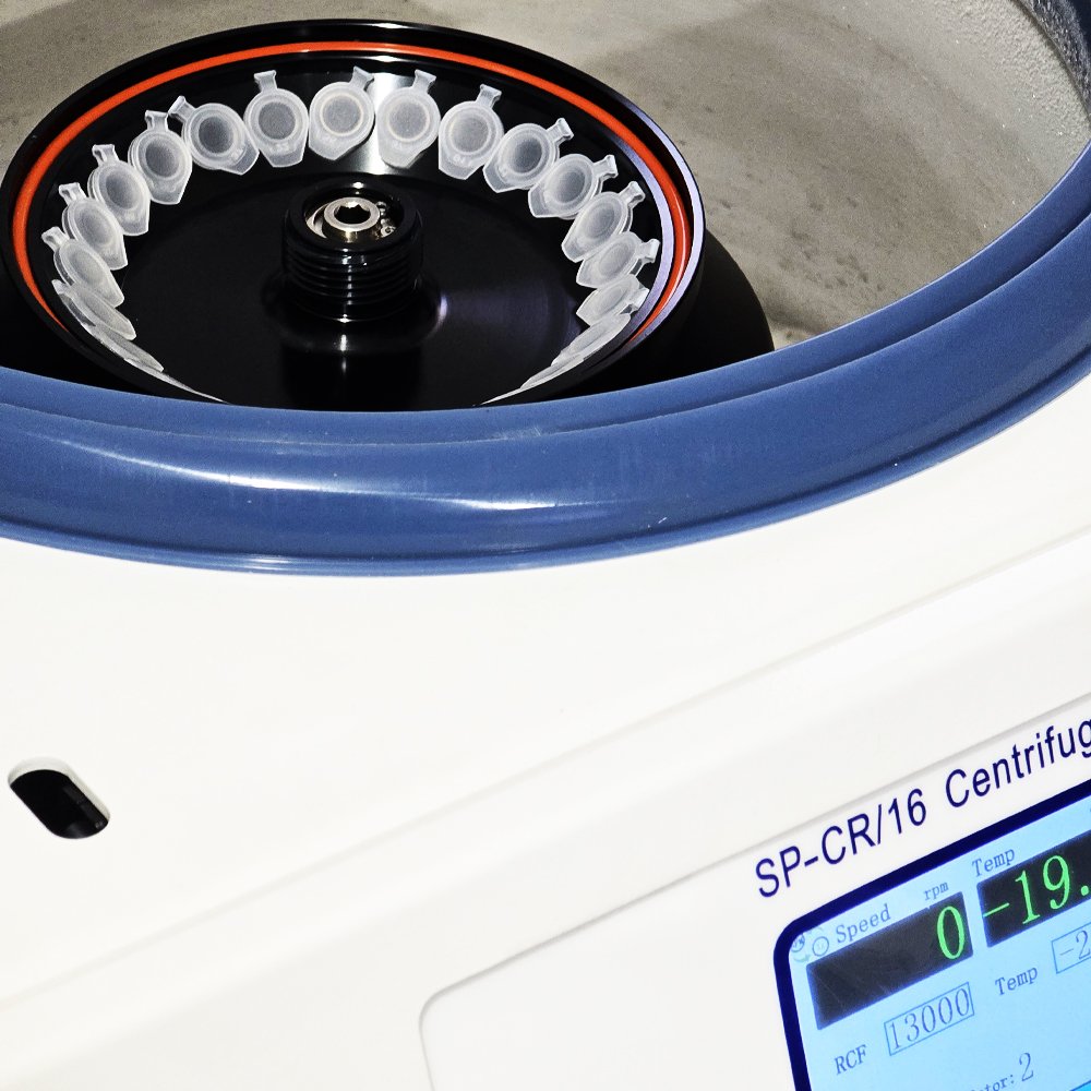 • A centrífuga refrigerada de alta velocidade SP-CR/16 é composta por carcaça, componente de acionamento, rotor, componente de controle elétrico e componente de refrigeração com unidade de compressor, entre outros.