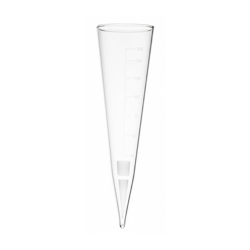 Fabricado em vidro transparente ou acrílico de alta resistência, possui formato cônico e graduação precisa, permitindo a medição direta do volume de sólidos depositados após o período de sedimentação.