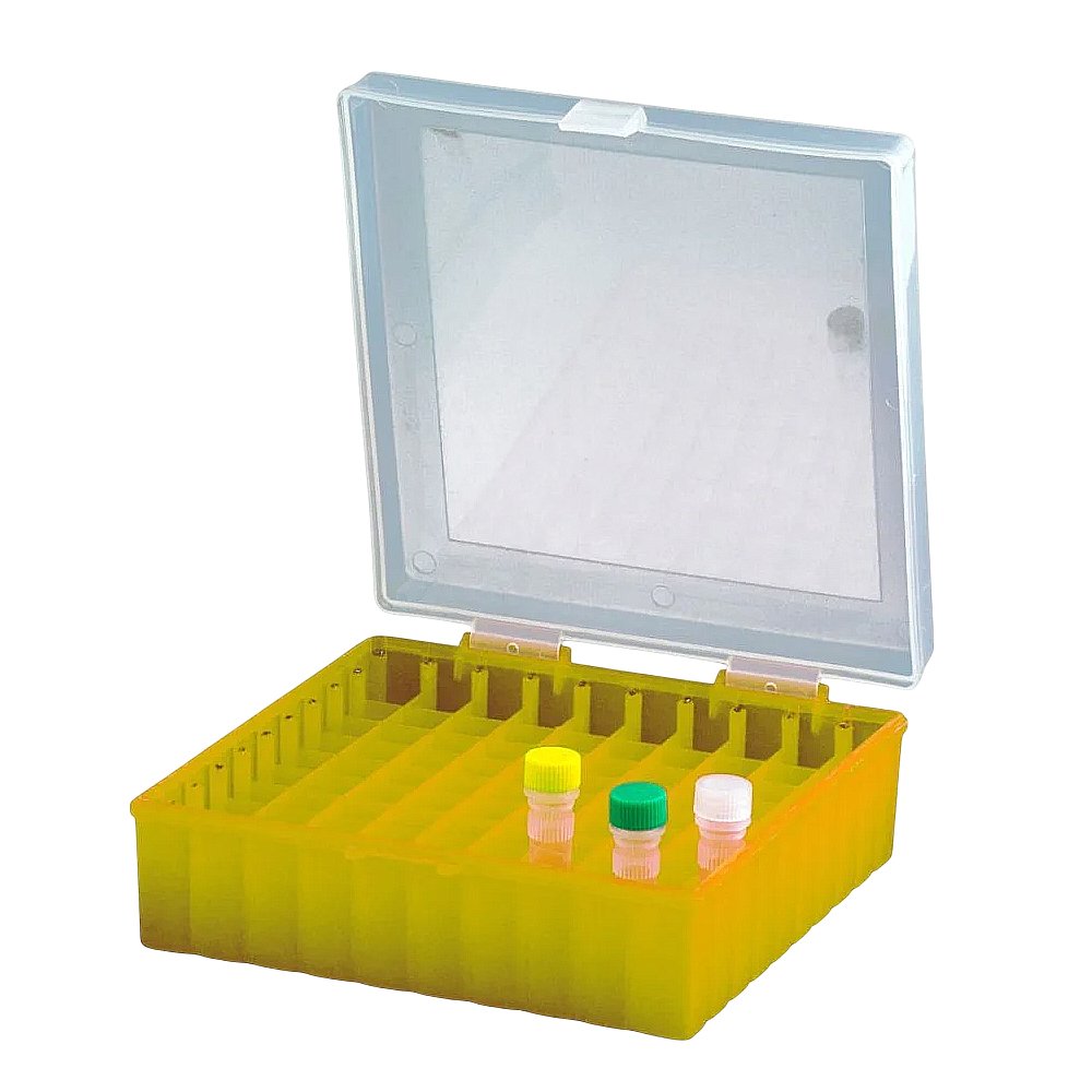 Criobox para 100 Tubos de 2,0mL - Tampa com Dobradiça - Cor Amarelo - Modelo CRIO100Y