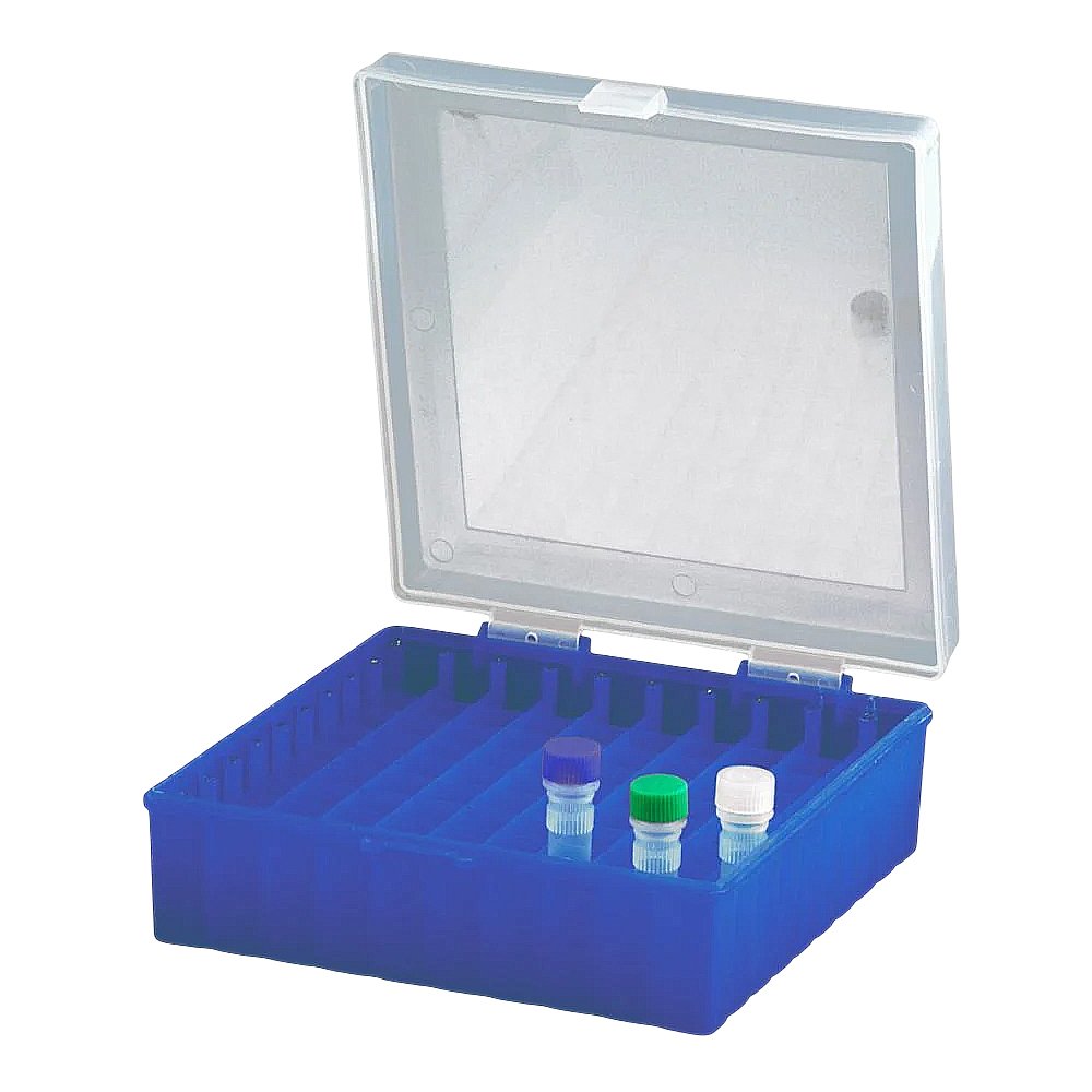 Criobox para 100 Tubos de 2,0mL - Tampa com Dobradiça - Cor Azul - Modelo CRIO100B
