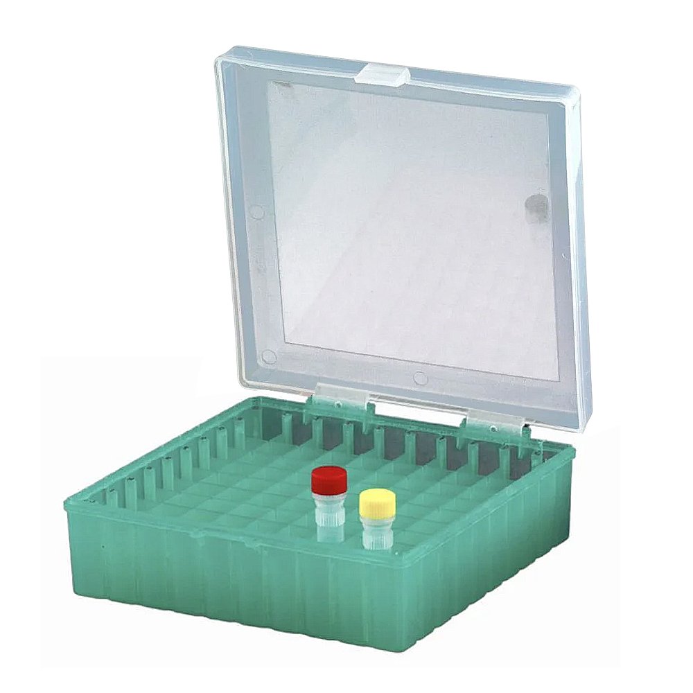 Criobox para 100 Tubos de 2,0mL - Tampa com Dobradiça - Cor Verde - Modelo CRIO100G