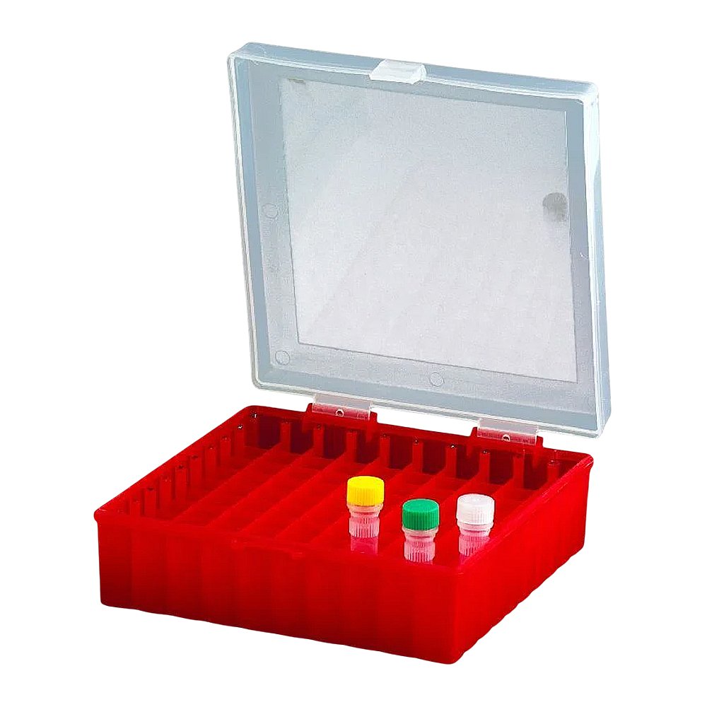 Criobox para 100 Tubos de 2,0mL - Tampa com Dobradiça - Cor Vermelho - Modelo CRIO100R