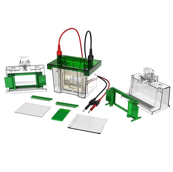 A cuba é ideal para separação de proteínas e peptídeos por SDS-PAGE ou PAGE nativa.