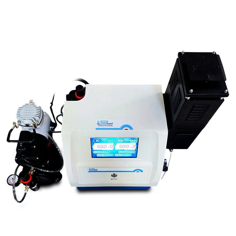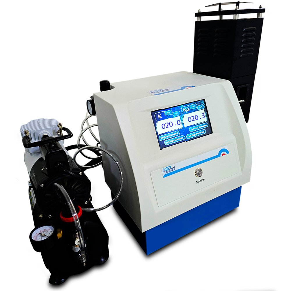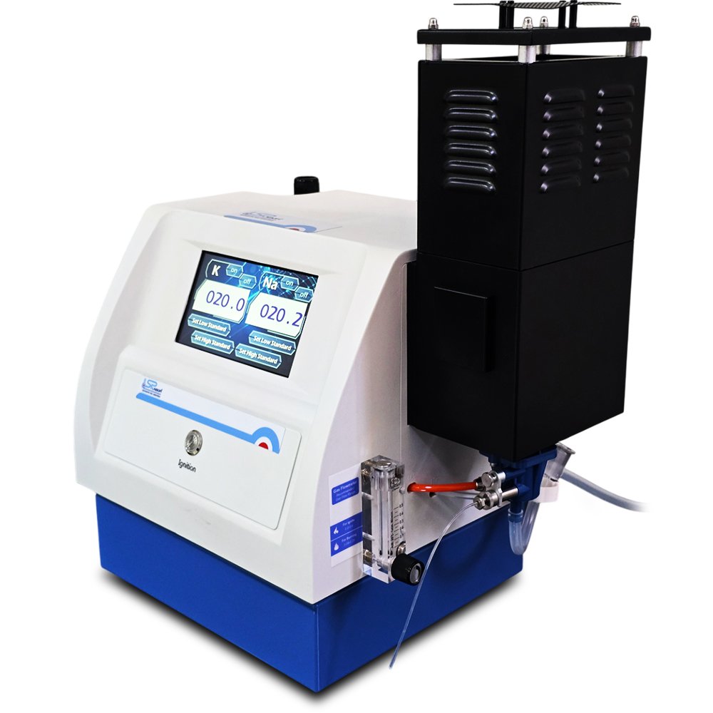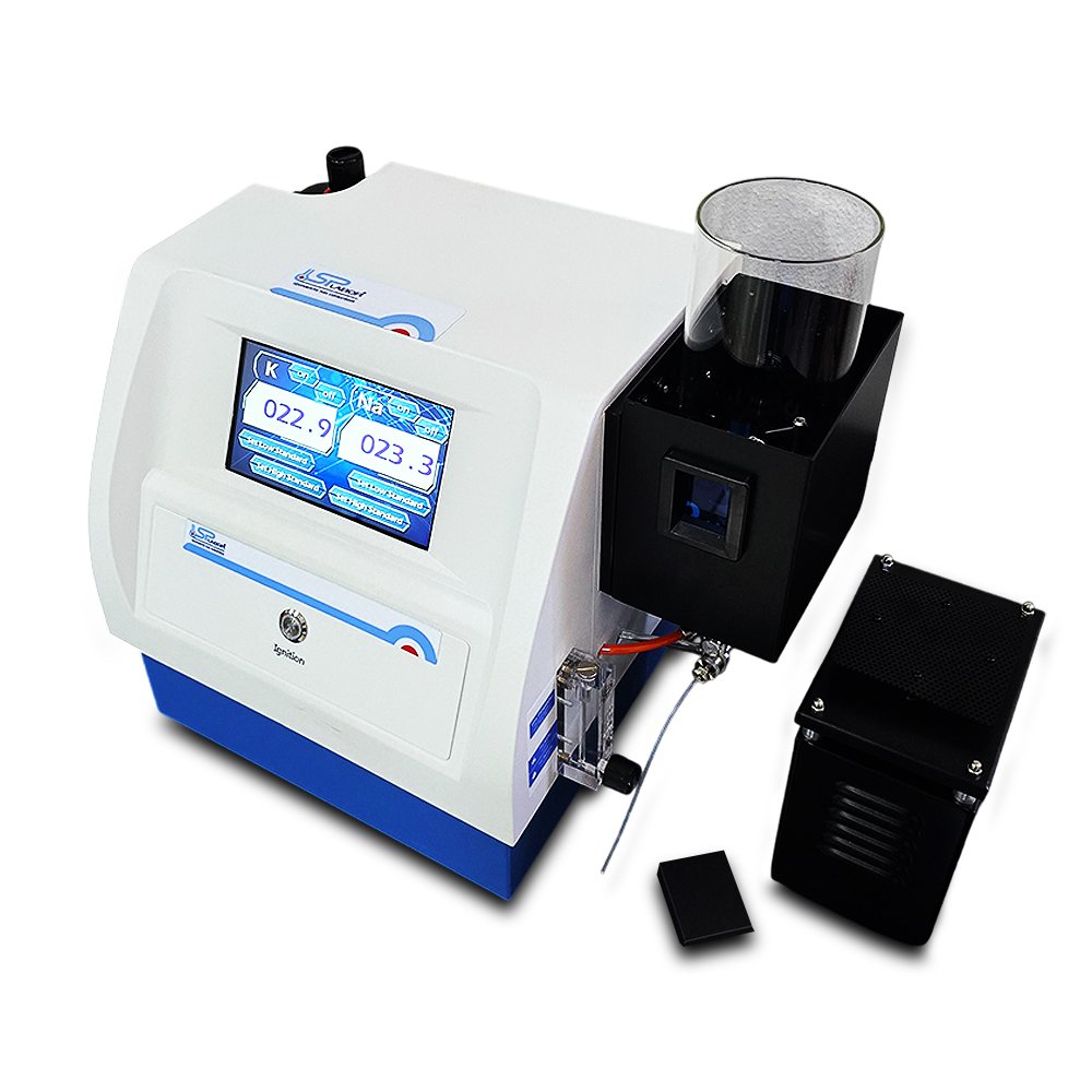 O equipamento realiza análises precisas de sódio (Na) e potássio (K) em amostras líquidas, com detecção mínima de 0,01 ppm.