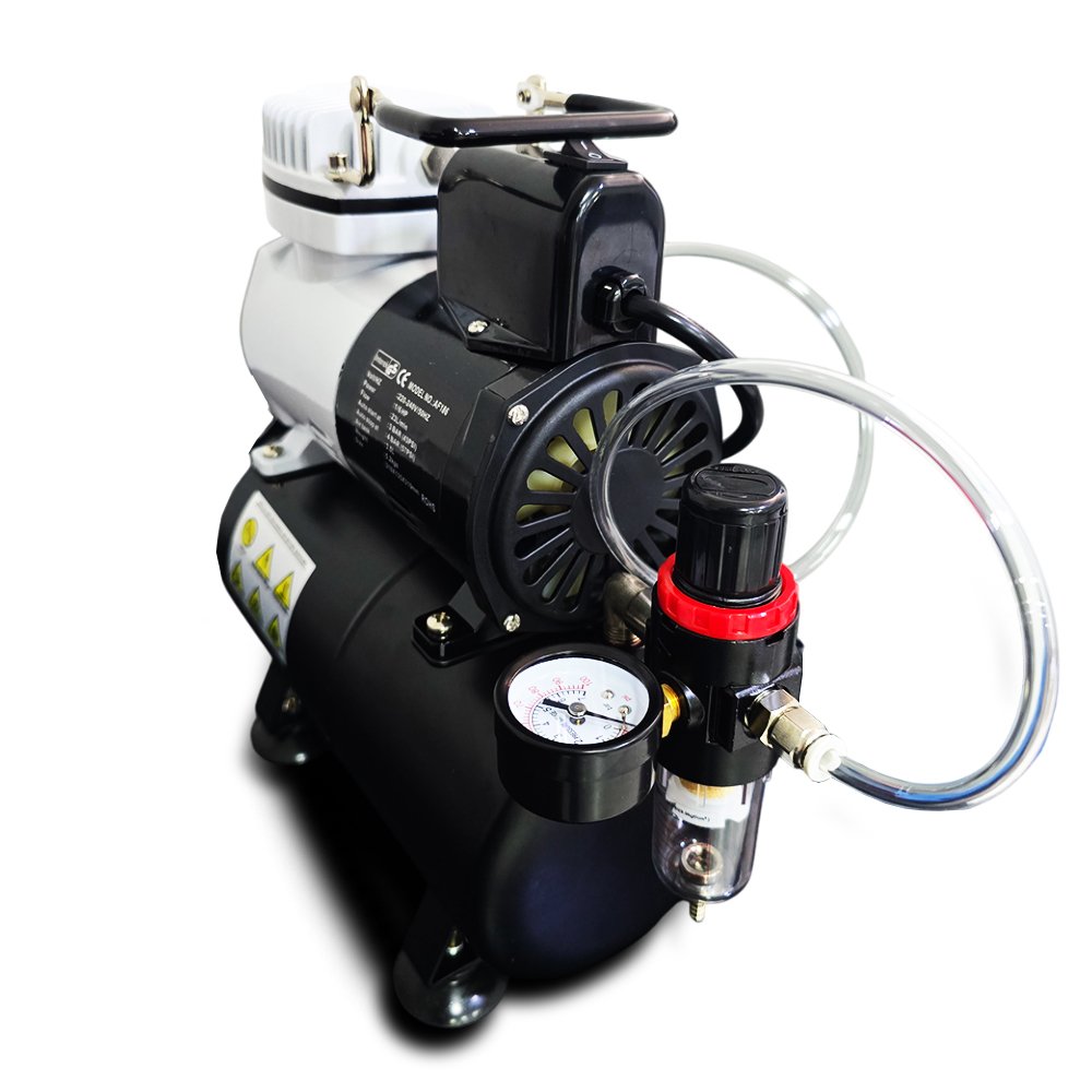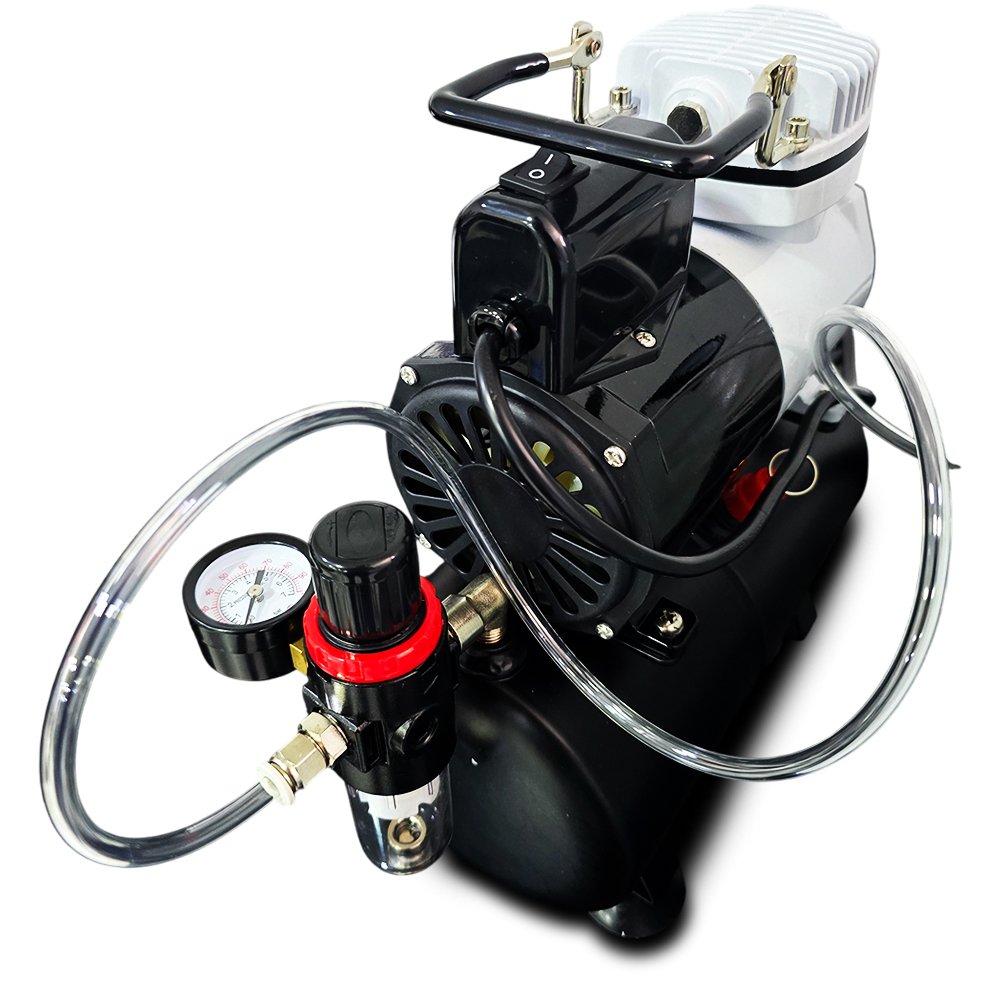 4. 💨 Compressor integrado — dispensa acessórios externos e garante estabilidade da chama.