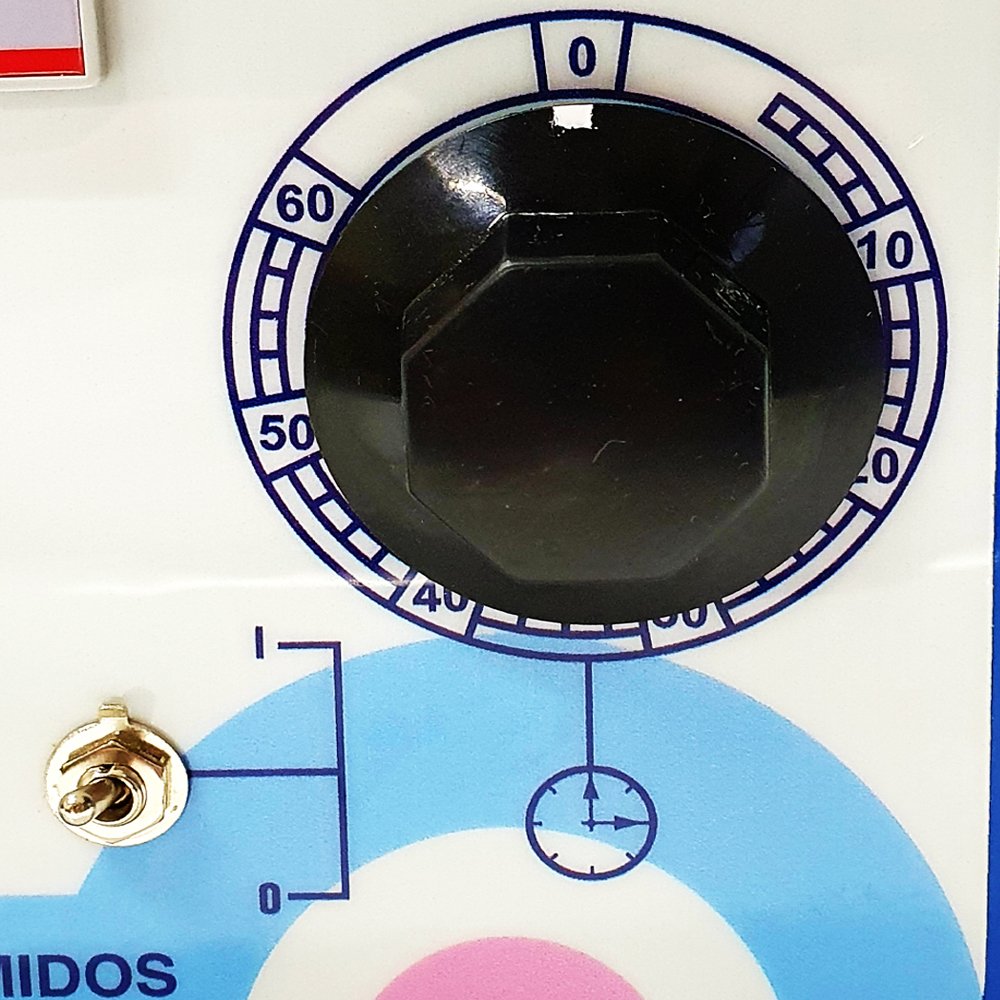 O equipamento opera de 2 a 40 RPM, ajustável digitalmente.