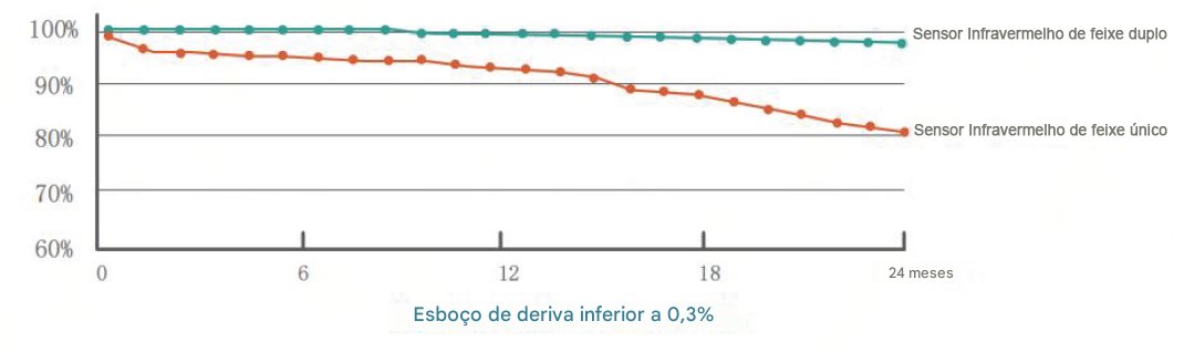 Princípio de medição de CO₂: Detecção por infravermelho.