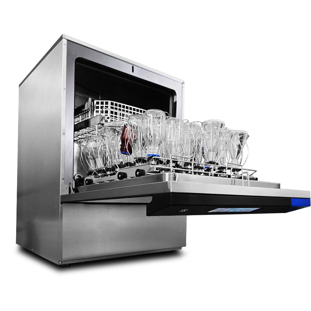 - Duas entradas de água paralelas na parte traseira garantem uma distribuição uniforme da pressão para cada prateleira e cada bico de pulverização.