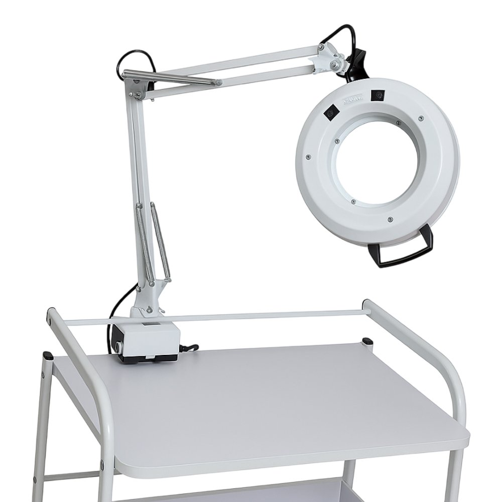 | Lente de Aumento de Mesa com Haste Flexível ( Lupa ) - Diâmetro da Lente 125 mm - Aumento 8X - Lâmpada de LED - Modelo 381/220 |