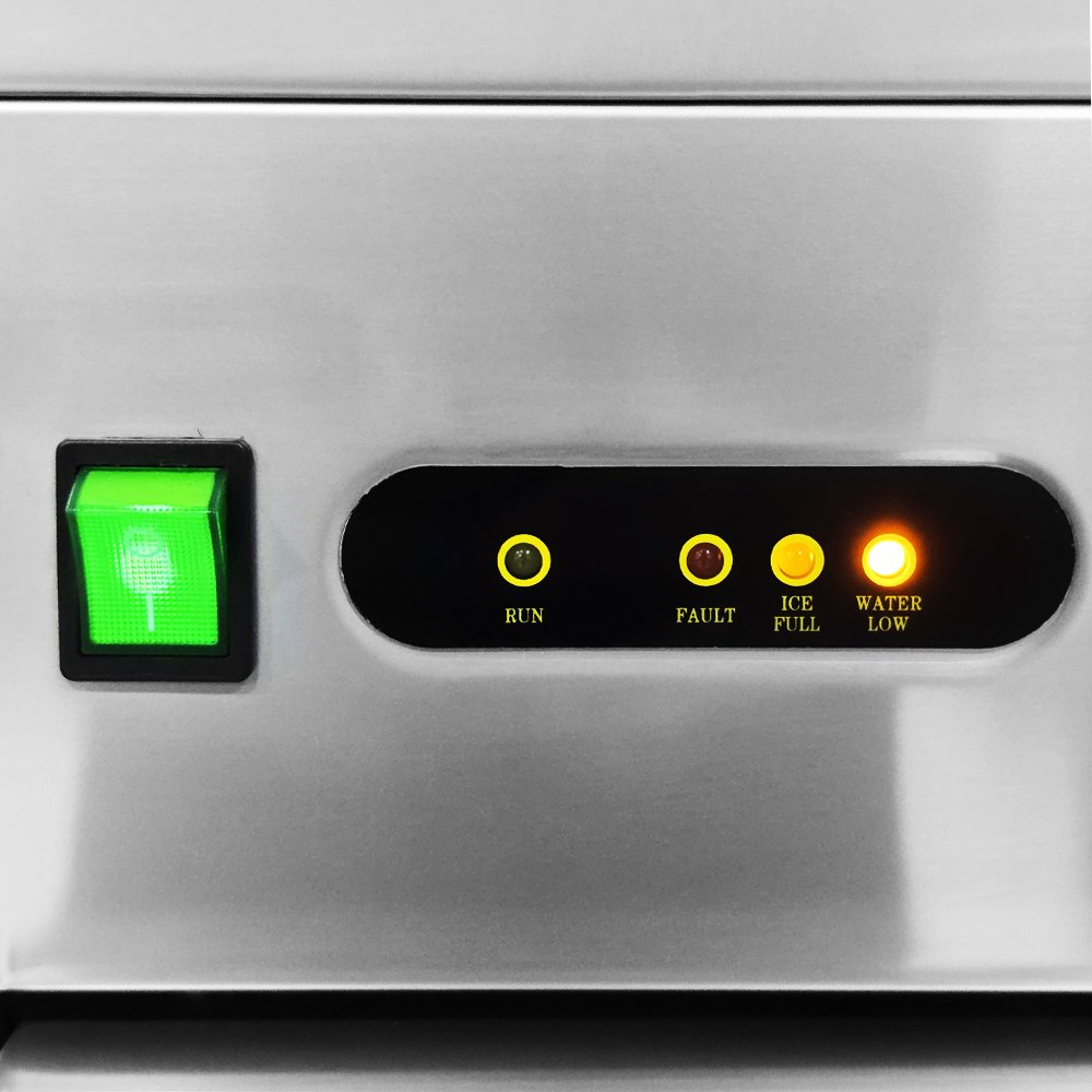 - Produz até 50 kg de gelo por dia e armazena até 07 kg em seu reservatório, com alimentação automática, fácil de instalar, necessitando apenas ter um ponto de água, um ponto para dreno (escoamento sempre abaixo do nível da maquina) e o ponto de energia na voltagem correta.