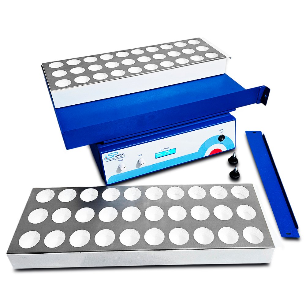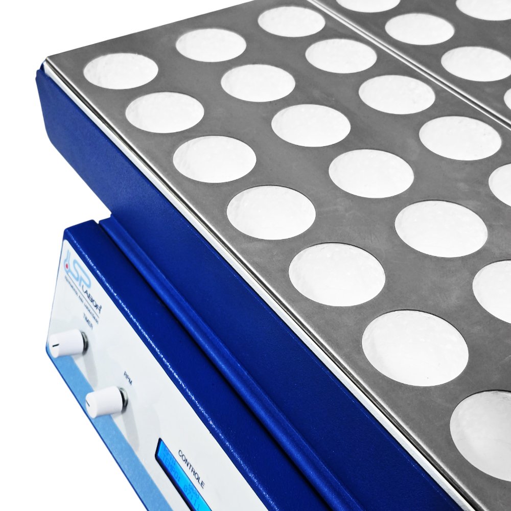 Equipada com tiras de isopor para até 30 provas, a SP-180/DT-ES permite o manuseio simultâneo de múltiplas amostras, otimizando o tempo de análise e aumentando a produtividade. Sua faixa de rotação de 0 a 300 RPM proporciona controle exato da agitação, adaptando-se às necessidades de diferentes protocolos experimentais.