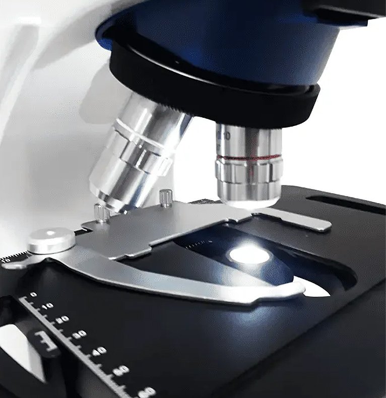 Seu revólver reverso para 4 objetivas, o condensador Abbe 1.25 e o ajuste micrométrico preciso garantem imagens nítidas e contraste elevado em diferentes níveis de ampliação.