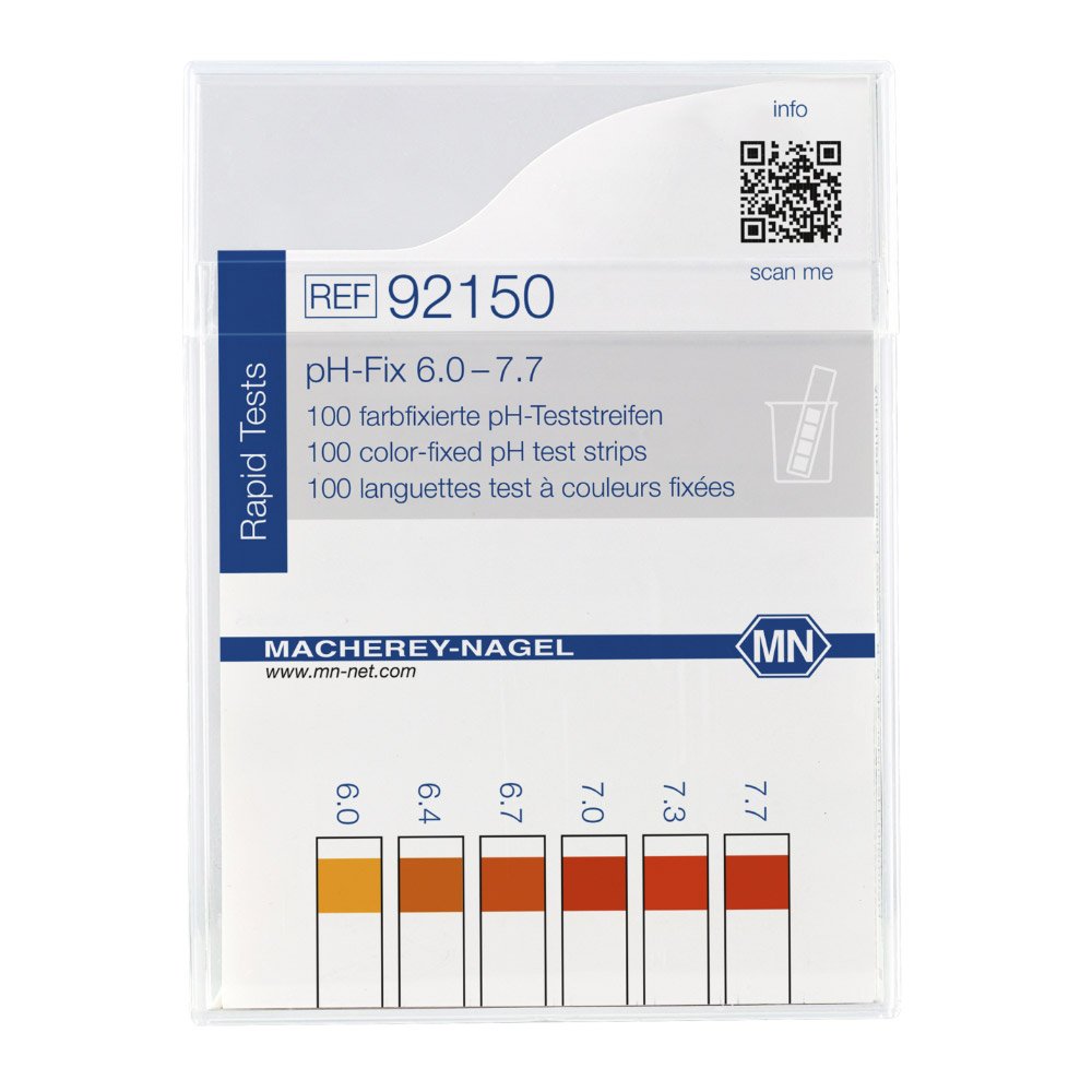 As tiras FIX apresentam resposta cromática estável, uniforme e de fácil interpretação, permitindo leitura imediata por comparação com a escala de cores. A faixa estreita entre pH 6 e 7,7 oferece maior sensibilidade visual para variações sutis, tornando o produto especialmente indicado para aplicações que operam próximas ao pH neutro.