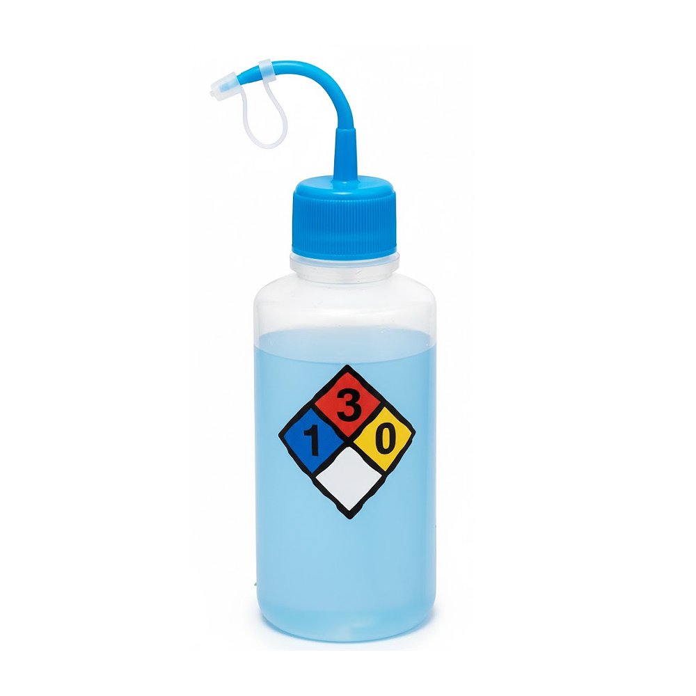 A graduação em silk-screen garante maior durabilidade da escala, mesmo após contato frequente com reagentes e processos de limpeza. Já a classificação de risco impressa no corpo da pisseta permite identificação rápida do conteúdo, reduzindo erros operacionais e contribuindo para a conformidade com boas práticas de laboratório.
