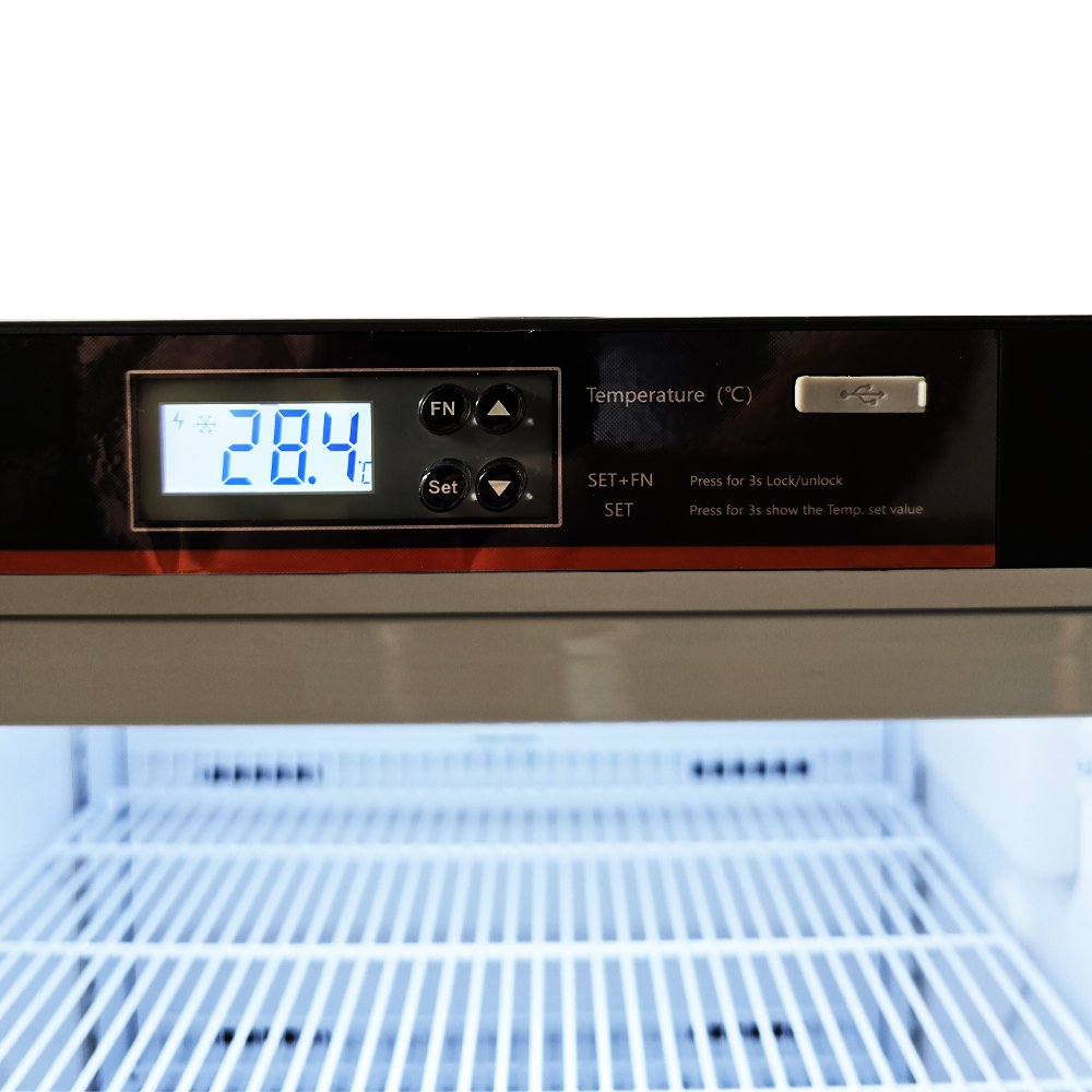 A porta de vidro duplo com aquecimento antiembaçante e vedação magnética proporcionam isolamento térmico superior, enquanto o painel digital de controle permite o acompanhamento em tempo real da temperatura interna.