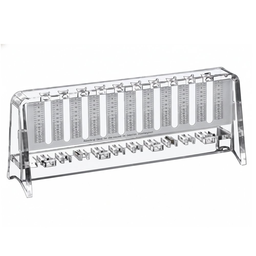 Fabricado em plástico acrílico transparente de alta resistência, o suporte oferece visibilidade total da coluna de sedimentação, permitindo leituras rápidas e confiáveis conforme o método Westergreen.
