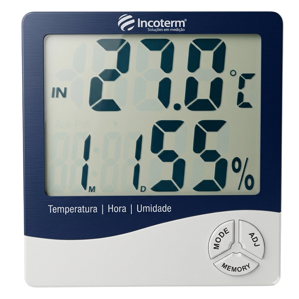 Termo-Higrômetro Digital TH 50 – Com Máxima e Mínima – Com Relógio – Faixa de temperatura interna -10°C ~ +50°C (+14°F ~ +122°F) – Modelo 9690.02.0.00 – INCOTERM
