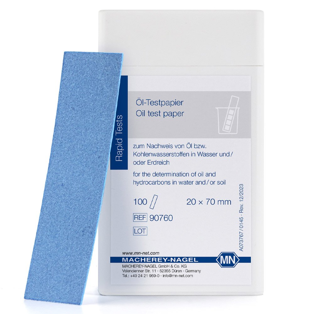 Papel indicativo óleo lubrificante de óleo combustível gasolina éter de petróleo detecta c/um mínimo 250mg/l(éter de petróleo)10mg/l (gasolina) 5 mg/l (óleo combustível) 1 mg/l (óleo lubrificante), caixa c/100 tiras de 20x70mm.