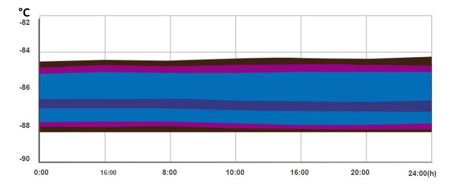 De –40°C a –86°C, com precisão de 0,1°C e uniformidade de ±2°C.