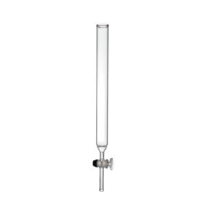 torneira inferior de vidro esmerilhado, que permite o controle preciso do fluxo do eluente e da velocidade de eluição, tornando o equipamento ideal para separações de alta precisão em análises laboratoriais. É amplamente utilizada em laboratórios de química orgânica, bioquímica, farmacologia e controle de qualidade.
